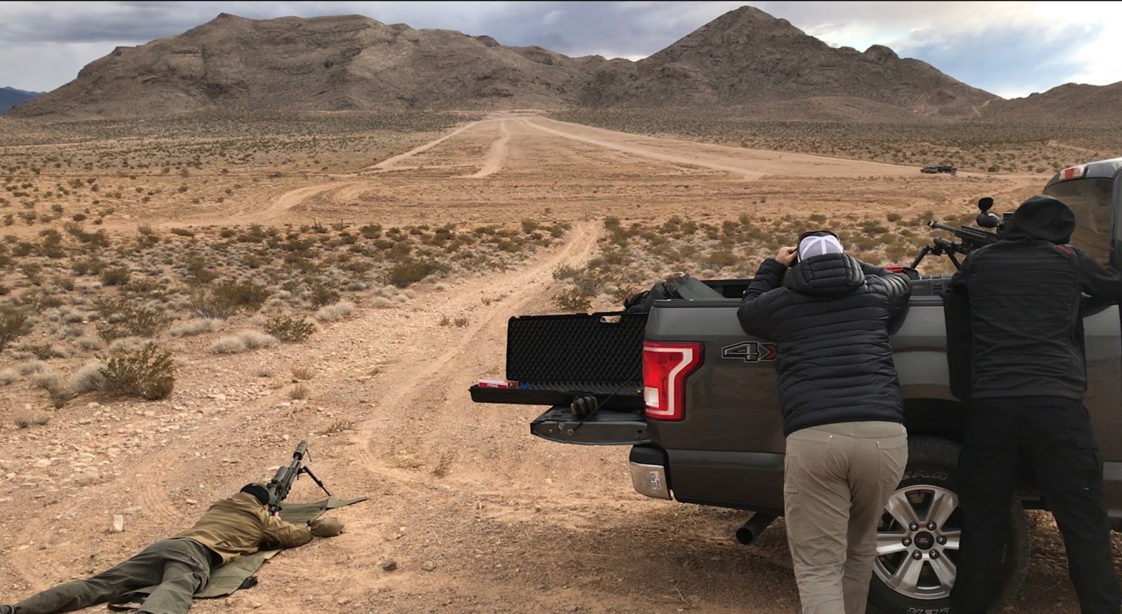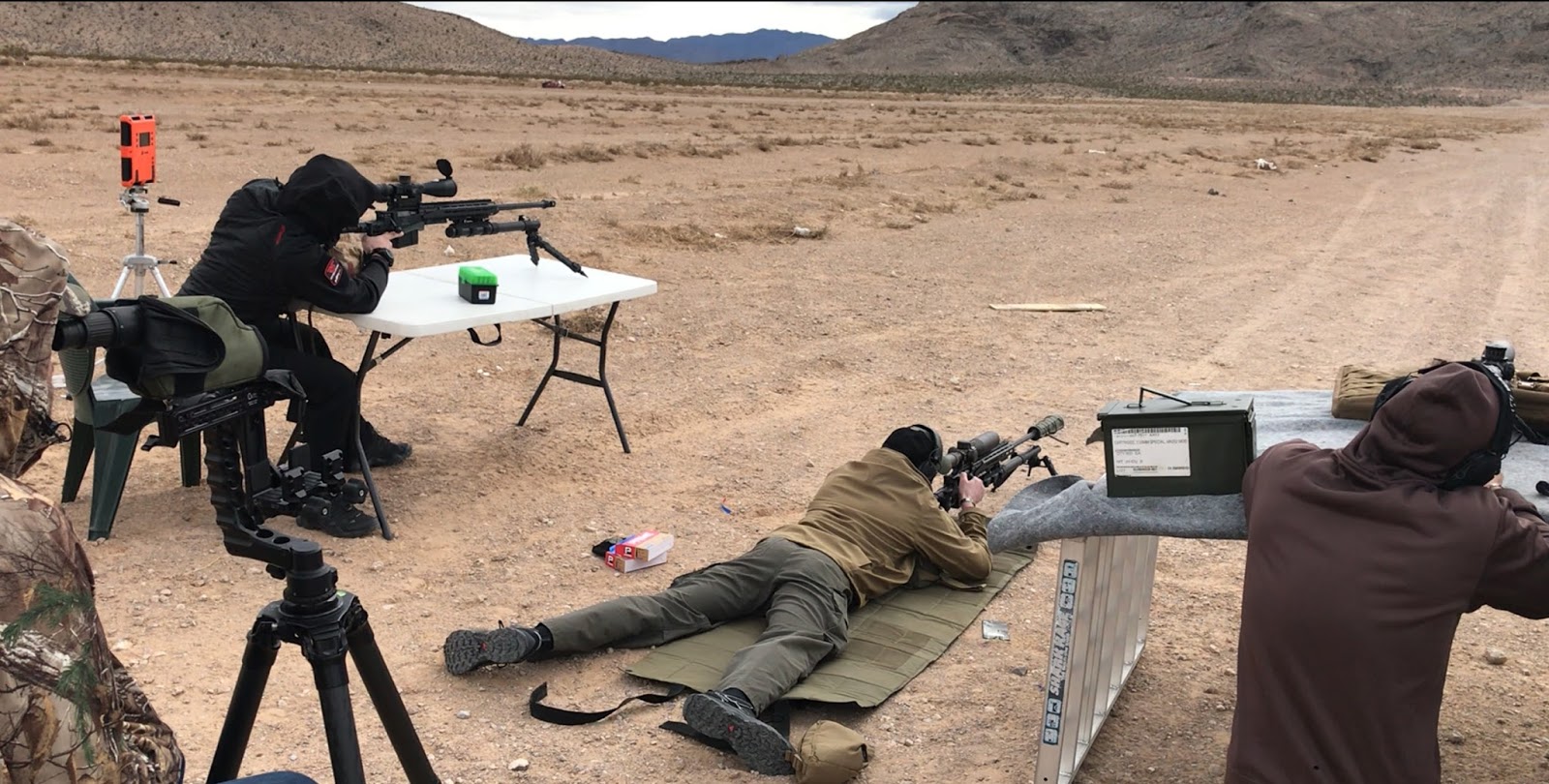 Justin , and Seth headed way back up the opposite mountains from the target to stretch the legs of the weapon systems just over 1 mile! The top notch marksmen from R&S had no problem landing their impacts right where their spotters Seth and Nate directed. All parties were exemplifying the true skill and fortitude required to work as a team and deliver precision fire from extreme long range! What an amazing day in the desert around some incredible shooters!