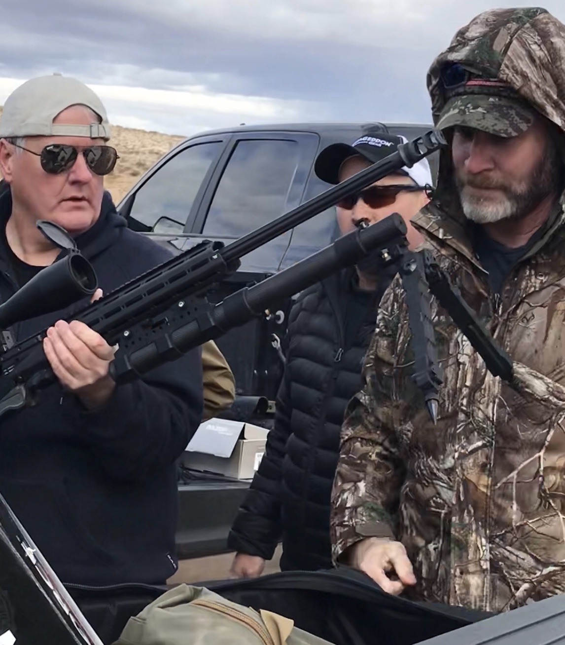 Ritter & Stark, along with Charlie Melton and the Charlie Mike Precision crew. Brad Stair (inventor of the TEJAS cartridge) from Performance Guns joined us as well, along with friend Justin Pearson of Asymetric Firearms, and a few other patrons along for the shoot. The rifles quickly began to fly out of their travel cases and the shooters began